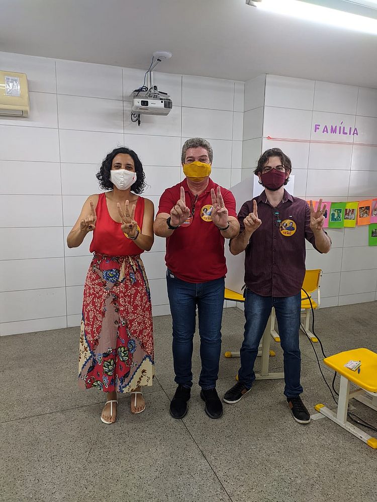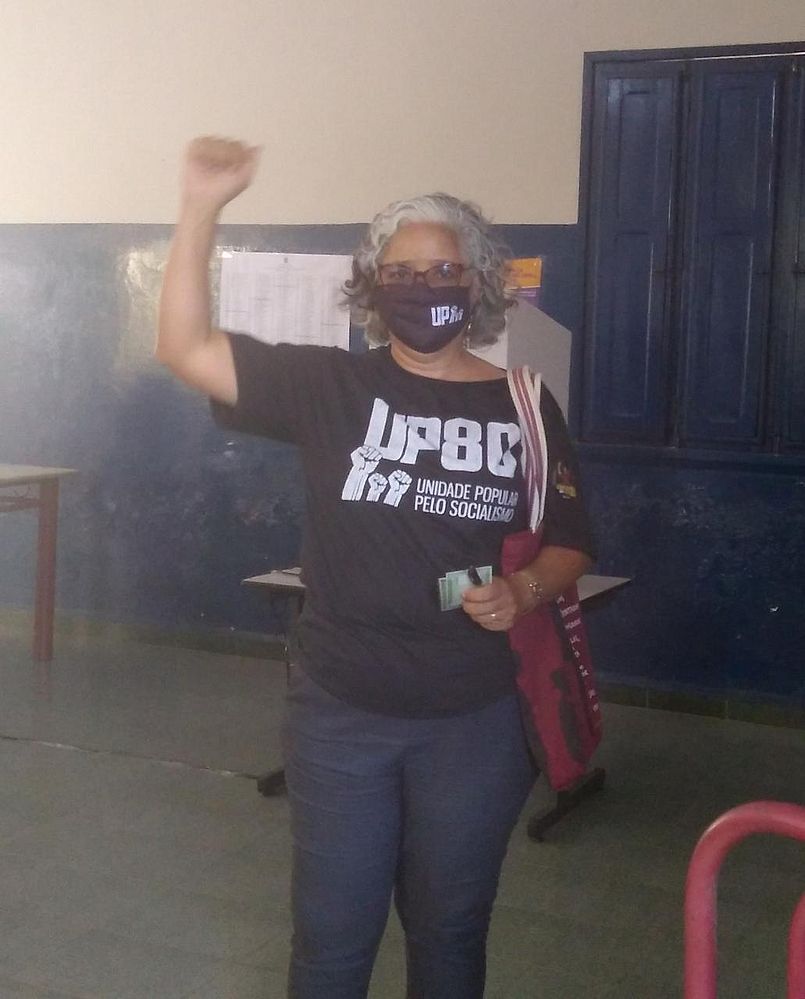 A candidata Lenilda Luna (UP) votou nesta tarde, no Educandário Eunice Weaver, em Mangabeiras. Ela estava acompanhada de sua candidata a vice, Vânia Gomes, e de correligionários. “Votei com a certeza de que travamos um bom combate, uma luta heróica de Davi contra Golias, do tostão contra o milhão. Encerramos essa campanha com convicção de que conquistamos nessa eleição milhares de pessoas para acreditar na organização da classe trabalhadora como única alternativa para transformar nossa realidade”, disse Lenilda, após concluir seu voto.