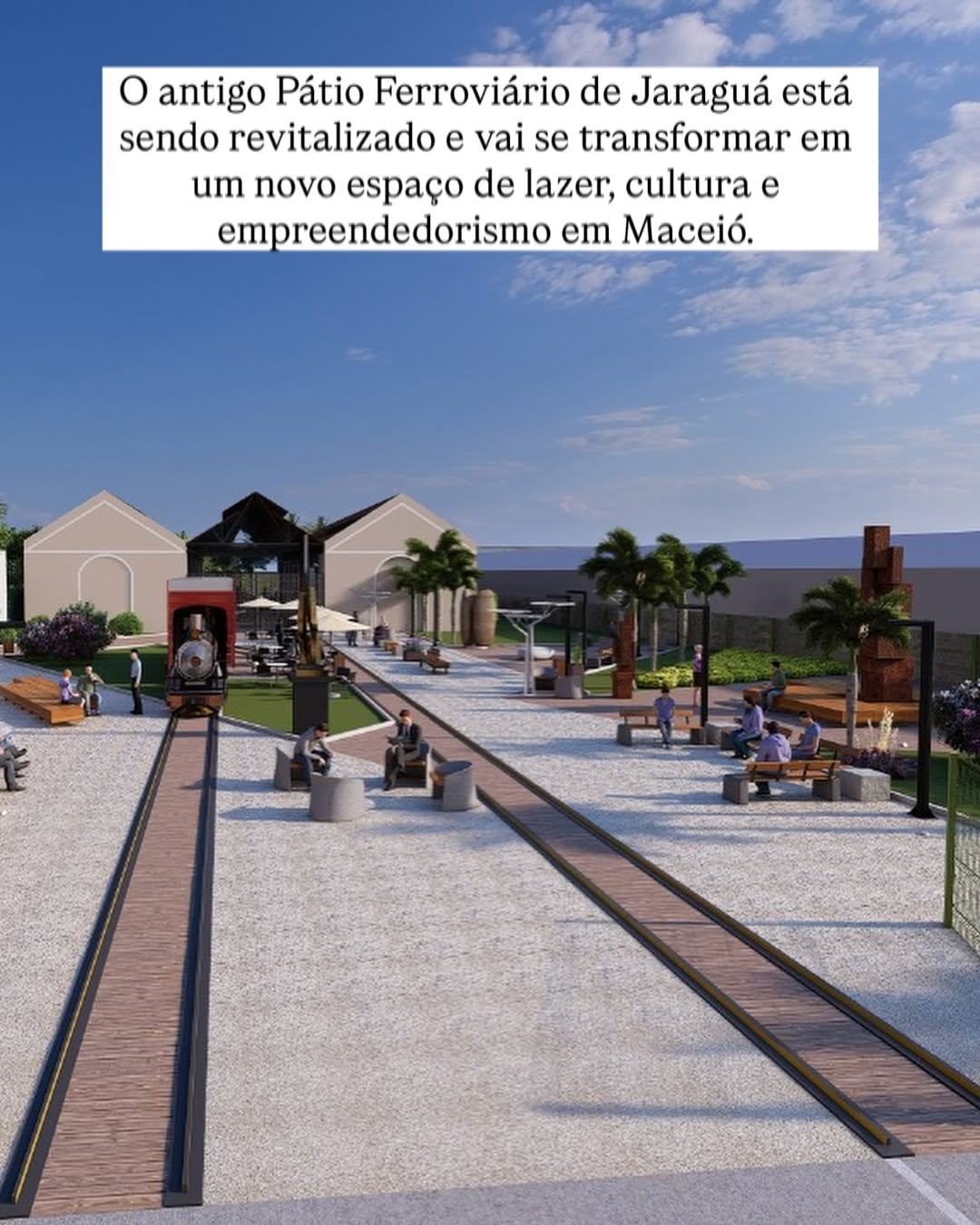 O prefeito de Maceió, João Henrique Caldas, o JHC, divulgou, nesta quarta-feira, 20, em seu perfil do Instagram imagens do projeto de revitalização do antigo parque ferroviário de Jaraguá. O projeto, conduzido pelo Instituto de Pesquisa, Planejamento e Licenciamento Urbano e Ambiental (Iplam) e executado pela Secretaria Municipal de Infraestrutura (Seminfra), já tem 30% das obras concluídas e deve se transformar em um novo polo de lazer, cultura e empreendedorismo em Maceió.