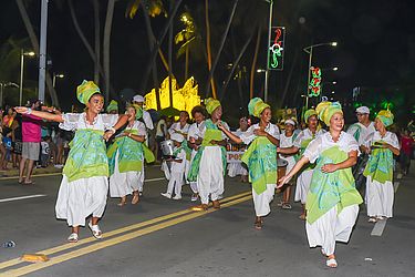 Um verdadeiro desfile de cultura e tradição. Com muita luz e cor, Maceió se despediu, neste domingo (22), da terceira edição do Natal dos Folguedos. O prefeito Rui Palmeira acompanhou o evento, que foi marcado pelo cortejo cultural. Mais de 100 grupos folclóricos e cinco mil pessoas desfilaram pela orla da cidade. A ação é uma organização da Prefeitura, através da Fundação de Ação Cultural (Fmac), da Secretária de Turismo, Esporte e Lazer (Semtel) e da Superintendência Municipal de Iluminação Pública (Sima).