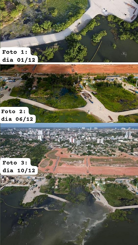 Imagens aéreas feitas do dia 1º de dezembro até este domingo, 10, mostram a evolução da situação do trecho da lagoa Mundaú sobre a mina 18 da Braskem, até o colapso na tarde de hoje. Era possível perceber que terreno cedia enquanto a lagoa avançava e cobria partes das vias construídas pela empresa para as atividades de fechamento das minas.