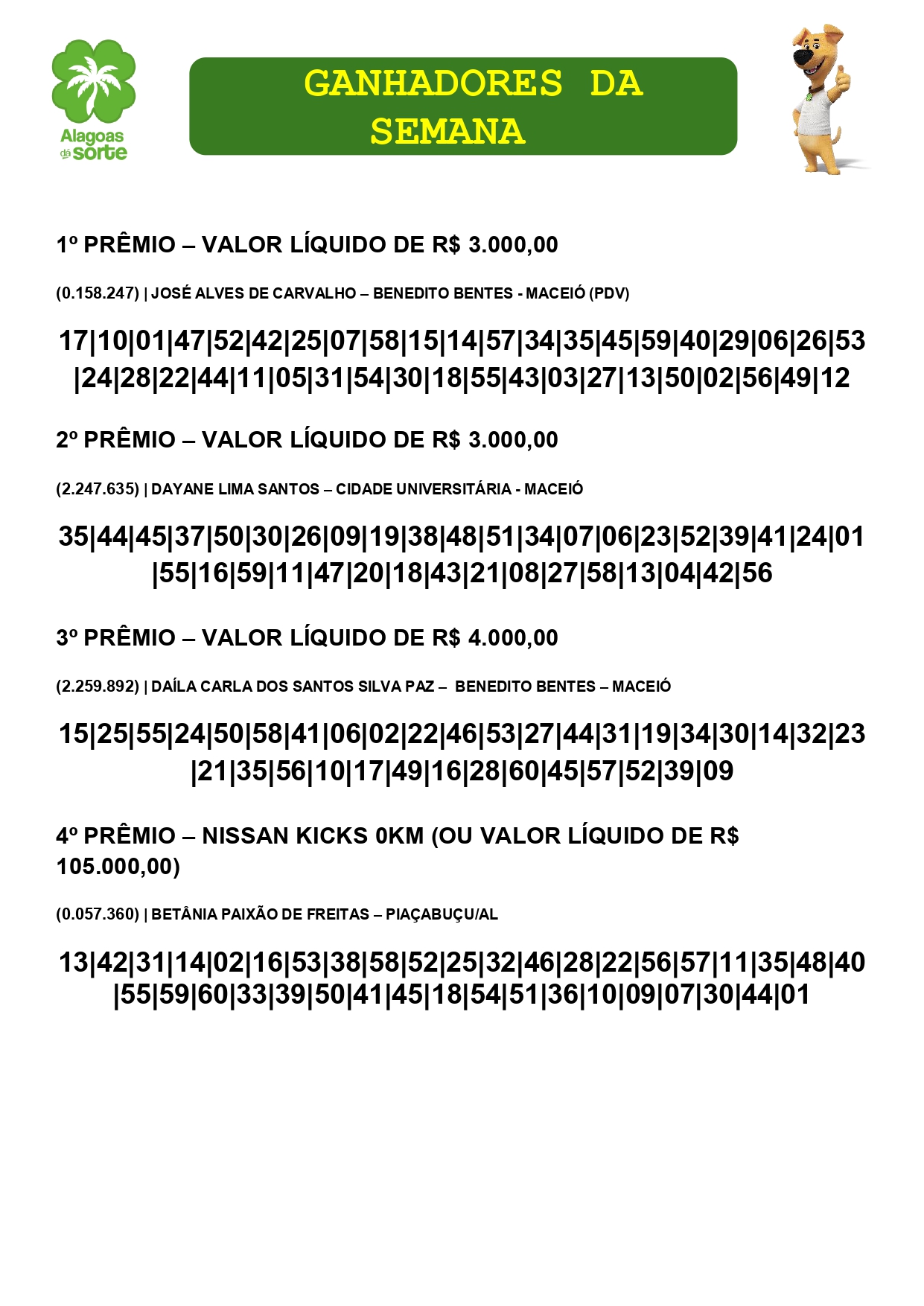 Conheça os ganhadores do Alagoas Dá Sorte deste domingo, 30 de novembro