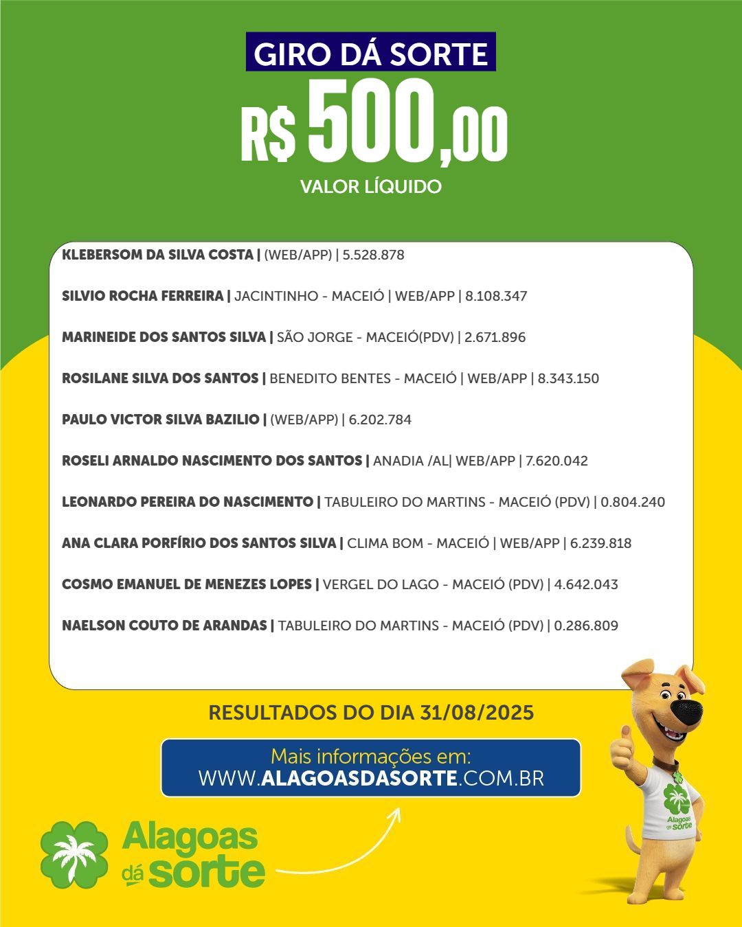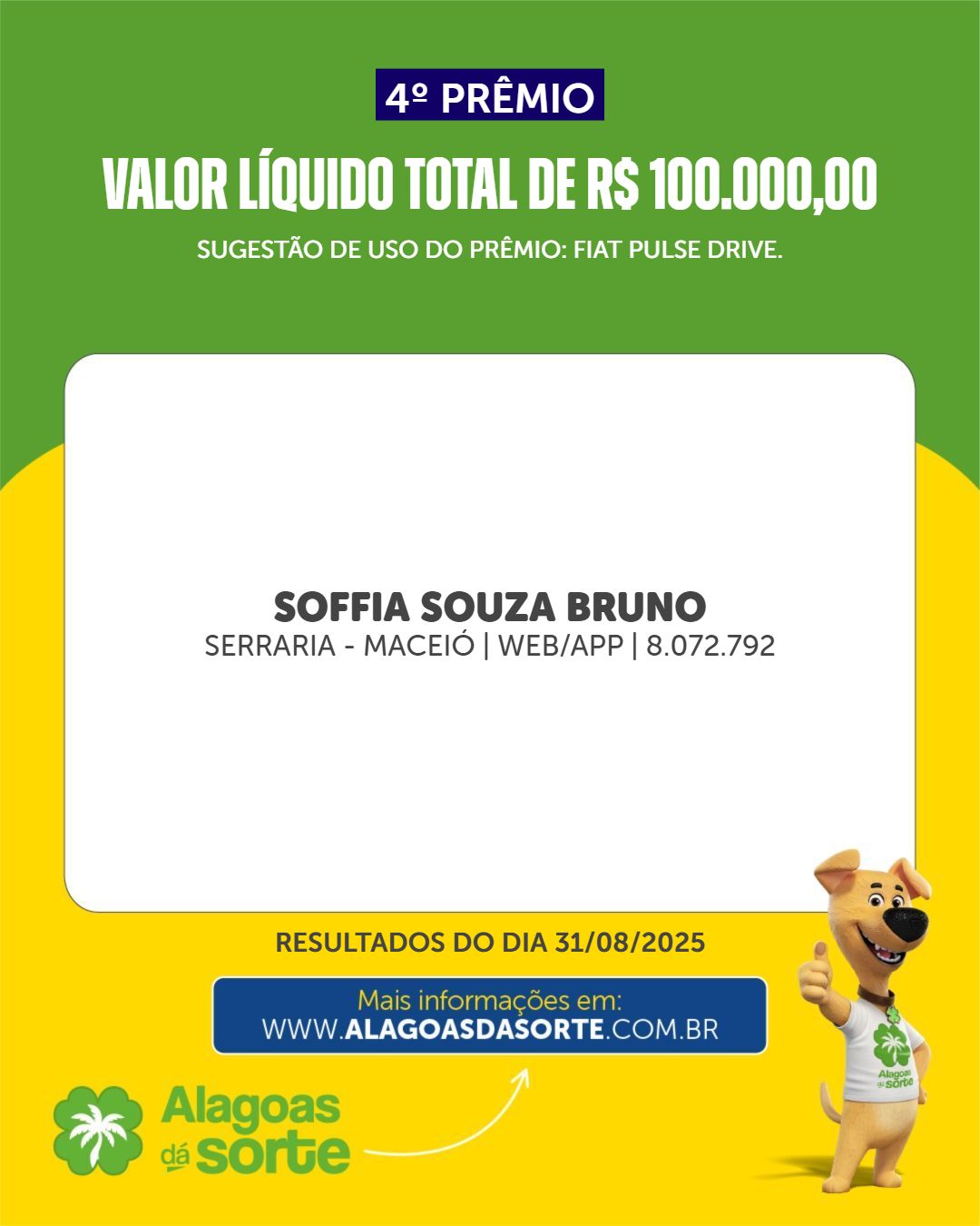 Conheça os ganhadores do Alagoas Dá Sorte deste domingo, 30 de novembro