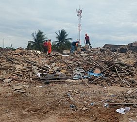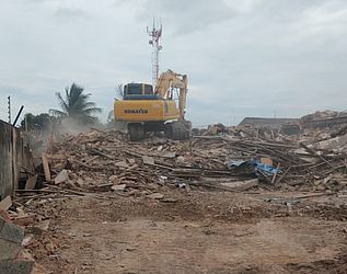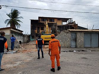Após mais de uma semana de trabalho intensivo do Corpo de Bombeiros para combater o fogo, doi demolido o imóvel onde funcionava uma fábrica no conjunto Inocoop, com ação dos militares e da Defesa Civil Estadual.