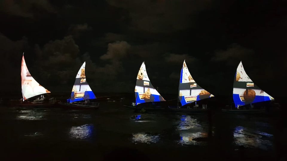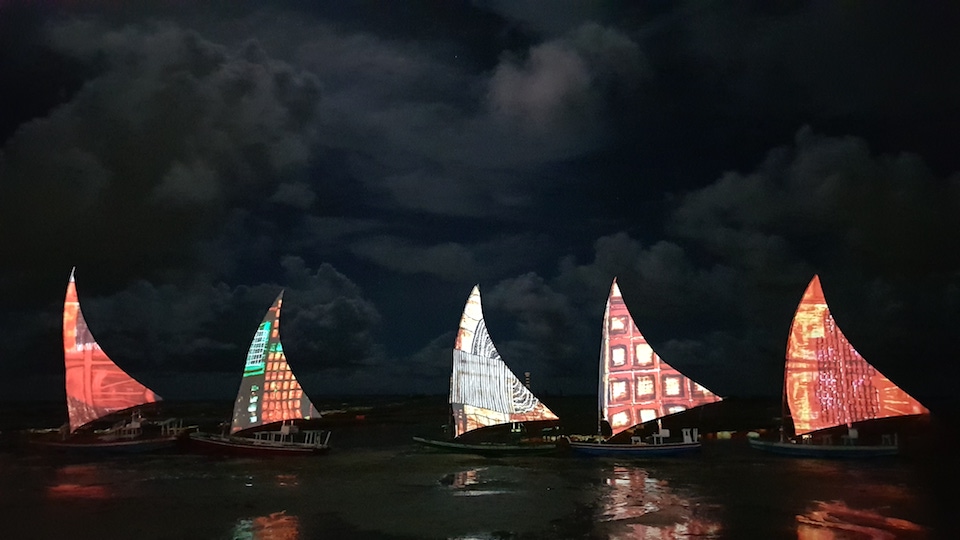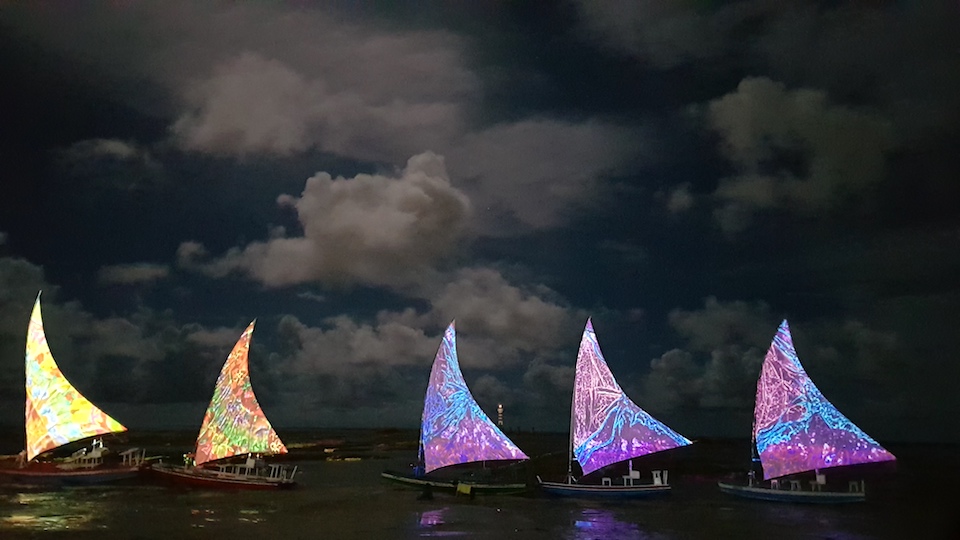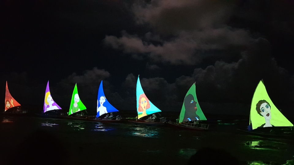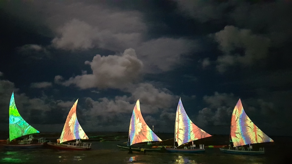 Que lindeza. As velas não partiram para o mar, mas projetaram a beleza dos nossos artistas plásticos e nós, até domingo, dia 21, podemos mergulhar no universo da arte no projeto Arte em Movimento – VelasTelas, do Núcleo Zero com patrocínio do Magazine Luiza por meio da Lei Rouanet.