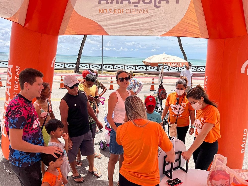 A estrutura do Verão 103,7 graus, que foi montada de 10h às 13h na Avenida Silvio Carlos Viana, próximo ao totem Eu Amo Maceió, recebeu maceioenses, pessoas de outras cidades do estado e até turistas de outras regiões, que curtiam as belezas naturais do município.
