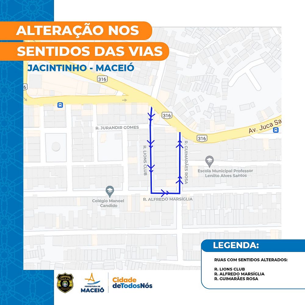 A Superintendência Municipal de Transportes e Trânsito (SMTT) informa à população que, a partir desta quinta-feira (2), haverá mudanças no tráfego de veículos em vias próximas à Escola Municipal Professor Lenilto Alves Santos, no bairro do Jacintinho. A medida visa garantir mais segurança para quem trafega pelas vias e fluidez para os condutores.