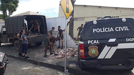 Uma viatura da Polícia Civil invadiu uma área do Quartel do Exército, na Avenida Fernandes Lima, em Maceió, na manhã desta sexta (20) após bater em um carro e ser empurrada para cima da calçada, no cruzamento com a Rua Coronel Lima Rocha.