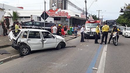 A viatura é uma picape da Delegacia Geral da PC, enquanto o outro carro é um Uno Mille branco. Dois policiais e dois passageiros do carro tiveram ferimentos, por isso, Corpo de Bombeiros, Samu e SMTT foram acionados.