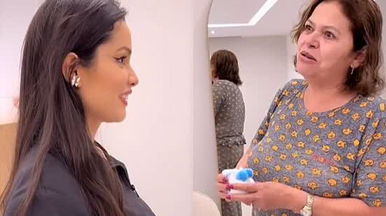 Em vídeo publicado em seu Instagram, Juliette está com a mãe, que abre uma caixa na qual há dois pares de sapatos, um rosa e outro azul. "A senhora vai ser avó", diz.