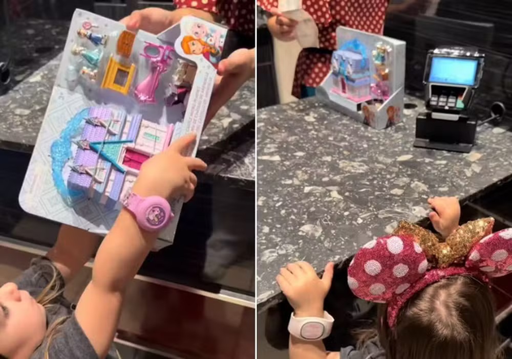 A garotinha escolheu uma casinha da Frozen como novo brinquedo, e a família expressou sua gratidão pela mágica experiência, reforçando a imagem da Disney como um lugar especial e encantador para as crianças.