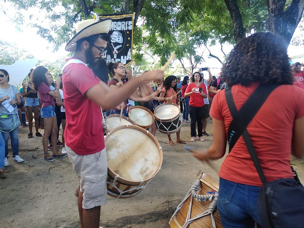 Os manifestantes levaram bandeiras, faixas e entoaram gritos em favor da educação. Grupos culturais também estiveram presentes no ato.