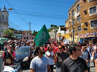 Após a concentração, aproximadamente 10 mil pessoas, segundo informou a organização, seguiram pela Avenida Moreira e Silva até a Praça dos Martírios, onde reforçaram o coro contra os cortes na educação.