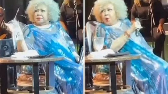 Alcione perdeu a paciência com a produção do show que ela fez no último fim de semana, em São Paulo. A cantora de 75 anos, que se apresenta sentada por conta das dores na coluna, chamou a atenção da sua equipe de cima do palco e na frente do público, que registrou o momento
