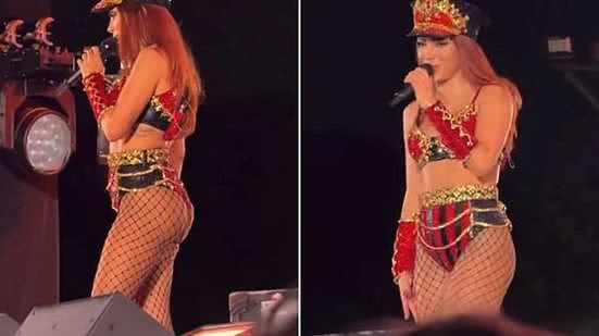 "Amor, deixa eu te falar uma coisinha. Não joga tênis no palco não, meu amorzinho. Porque se cair na minha cabeça, eu não vou nem te contar o que acontece. Na minha cabeça eu respiro e resolvo, se cair na do convidado que veio aqui, eu nem sei", afirmou. "Sobe só o ódio aqui de que poderia ter caído na minha cabeça."