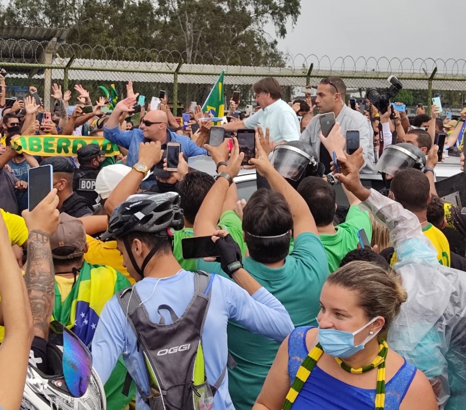Desde o desembarque do avião até a saída das dependências do aeroporto, Bolsonaro e sua comitiva foram acompanhados pelos apoiadores, munidos de celulares para registrar todo o trajeto.