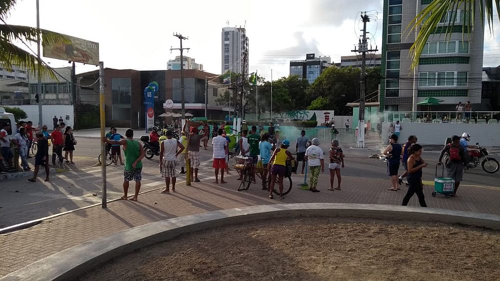 Uma manifestação de vendedores de coco resultou no bloqueio dos dois sentidos da Avenida Doutor Antônio Gouveia, em frente à Feirinha de Artesanato da Pajuçara, em Maceió, na tarde desta sexta-feira (21).