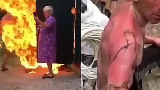 Na cena seguinte, pessoas correram em socorro do homem incendiado.