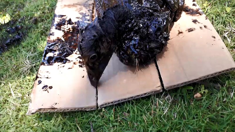 Um vídeo que circula nas redes sociais mostra a agonia de uma ave completamente coberta de petróleo cru, material que tem vazado e aparecido no litoral de Alagoas e dos demais estados do Nordeste desde setembro.