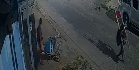 Ele disfarça, para em frente a um prédio, e em seguida segue em direção ao alvo: a casa de um advogado que prefere não se identificar. O bandido arromba o portão, entra na residência e sai levando uma bicicleta. Não satisfeito, uma hora depois, ele volta na companhia de um comparsa. Os dois voltam a invadir o imóvel e saem do local com mais objetos.