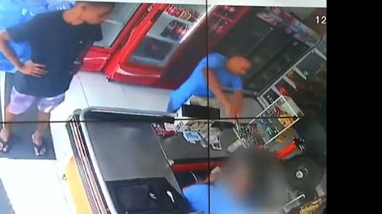 A dupla entra no estabelecimento e um deles diz querer comprar água. Segundos depois, eles anunciam o assalto com um revólver apontado para o proprietário, que estava no caixa.