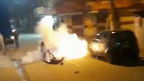 Um vídeo que se espalhou no Whatsapp mostra Márcio Esteves dos Santos tentando andar em cima de uma bobina –objeto circular usado para enrolar fios– em uma rua no bairro de Caramujo, em Niterói (região metropolitana do Rio). Logo depois ele cai, e a bomba caseira estoura.