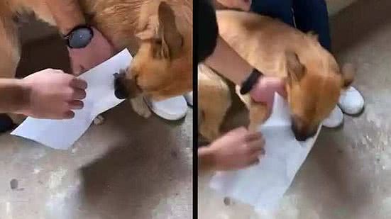 Um estudante registrou, em vídeo, o momento em que um cachorro que vive na UFMG pulou na sua mão e arrancou o papel com o resumo da matéria que ele usaria em uma prova. O aluno até tenta recuperar seu trabalho, mas o cão fica bravo quando ele se aproxima.