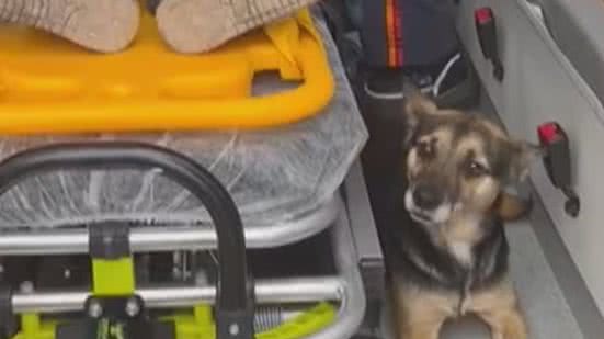 O vídeo, gravado pelo socorrista Luiz Henrique Bohrer, mostra o animal dentro da ambulância ao lado do tutor durante todo o atendimento médico.