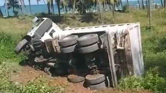 O caminhão estava carregado de brita e seguia a caminho de Sauaçuí, no Litoral Norte, onde a Secretaria de infraestrutura realiza obras."