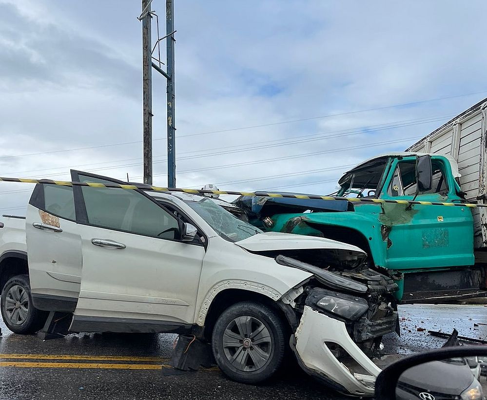 O acidente grave entre caminhão e caminhonete, na Ladeira do Catolé, no município de Satuba, deixou um motorista de 28 anos preso às ferragens na tarde deste domingo, 28. O Corpo de Bombeiros foi acionado para a retirada da vítima do automóvel. O homem apresentou lesão no braço esquerdo, fratura no fêmur, e estava com choque hemorrágico.