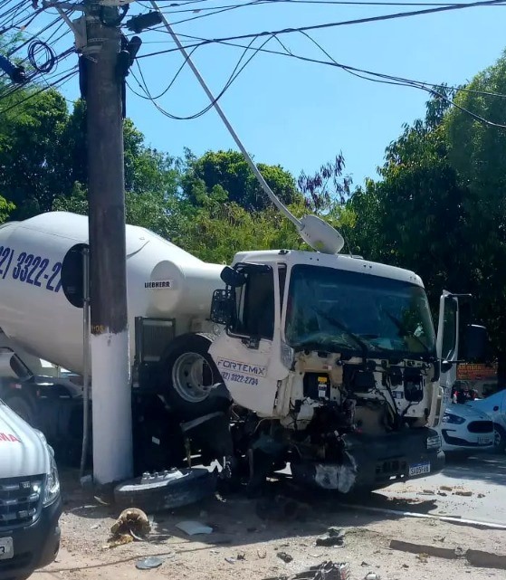 Um caminhão carregado de cimento invadiu uma calçada e se chocou com um poste de alta tensão, no começo da tarde desta quinta-feira (29), na Avenida Durval de Góes Monteiro, na parte alta de Maceió. Não houve feridos.