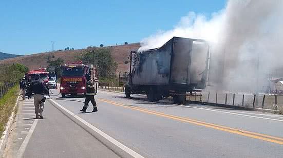 O radialista Hermes Marques filmou o momento em que um bombeiro utiliza uma mangueira com água para tentar apagar o fogo e divulgou as imagens nas redes sociais. O registro mostrou a parte interna do baú do veículo em chamas.
