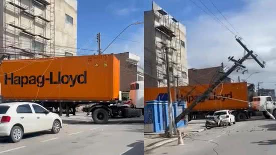 Em imagens enviadas ao TNH1, é possível ver o poste curvado para a pista correndo o risco de desabar em cima de um veículo. Além disso, as imagens também mostram automóvel envolto de diversos fios e ocupando boa parte da via. Veja o vídeo: