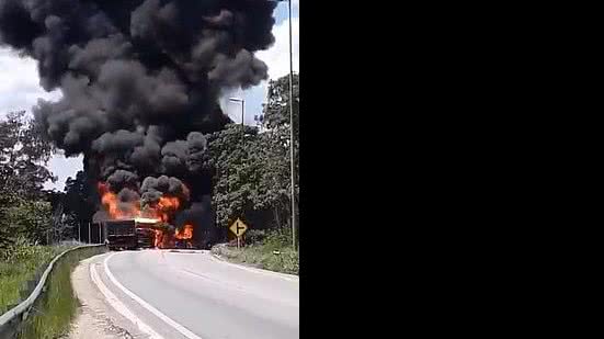 O fogo gerou uma imensa coluna de fumaça, vista de longe por moradores da cidade. Ainda não há informações sobre feridos e o que teria provocado o acidente entre o carro e a moto.