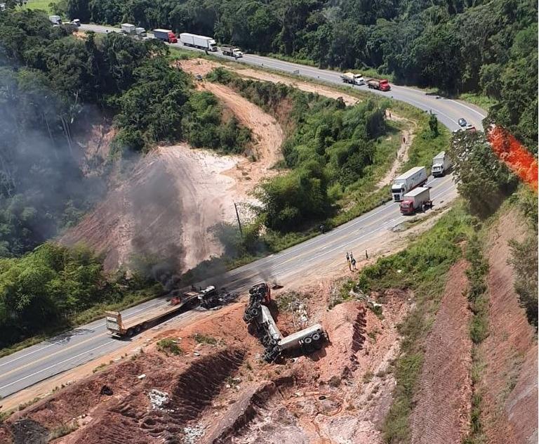 A rodovia ficou interditada nos dois sentidos, sendo desbloqueada às 13h40.