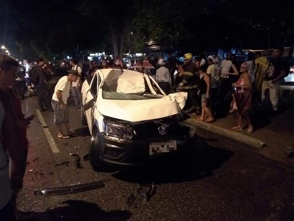 Ainda segundo relato de testemunhas, a motorista de uma Saveiro não respeitou o sinal vermelho e passou direto, atingindo os outros dois carros que estavam parados, incluindo a van, e ainda capotou. O acidente aconteceu no sentido Tabuleiro.