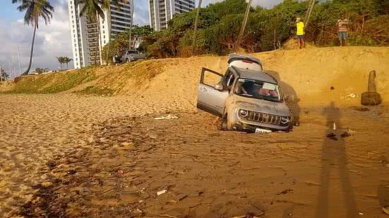 Um carro invadiu a areia da Praia de Jacarecica e ficou atolado na manhã desta sexta-feira, 18, no Litoral Norte de Maceió. Três jovens, sendo dois turistas, estavam no veículo, mas não apresentaram ferimentos.