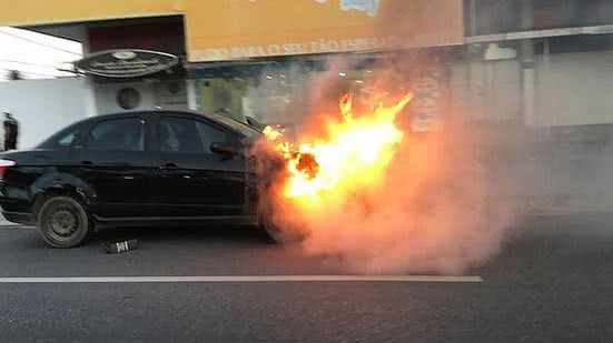 No vídeo é possível ver o momento em que as chamas tomam conta do carro e os bombeiros tentam conter o fogo. Assista: