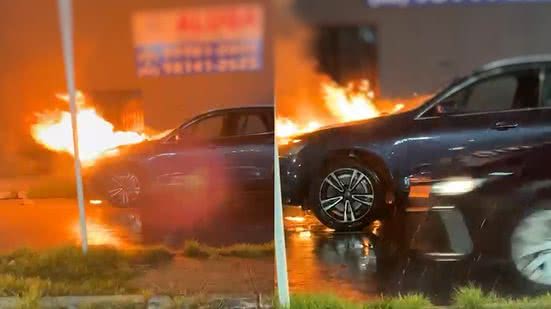 De acordo com o Corpo de Bombeiros, o fogo atingiu um carro híbrido - veículo que usa dois tipos de motores para se locomover: um a combustão e outro elétrico - e, antes da chegada da equipe, a situação foi parcialmente controlada por populares.