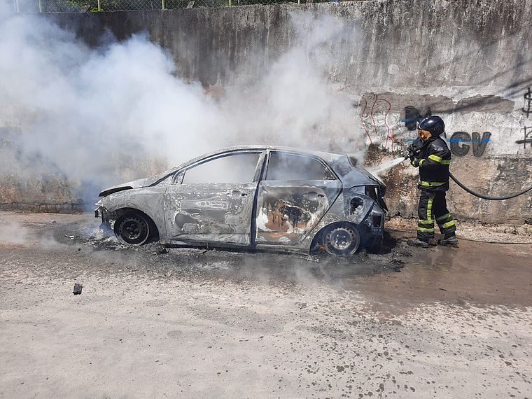 A testemunha conta que o carro estava parado quando começou a incendiar. O Corpo de Bombeiros foi acionado por volta das 12h33 e enviou ao local uma viatura com quatro militares para a ocorrência.