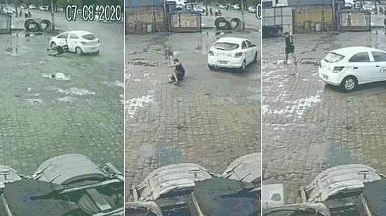 Apesar da pancada violenta, o homem sai andando normalmente. Veja: