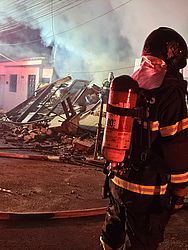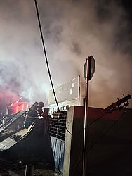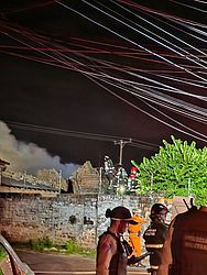 "A Defesa Civil informa que isolou a área e interditou duas residências do lado esquerdo do imóvel que foi atingido pelo incêndio. Após uma explosão o imóvel colapsou.