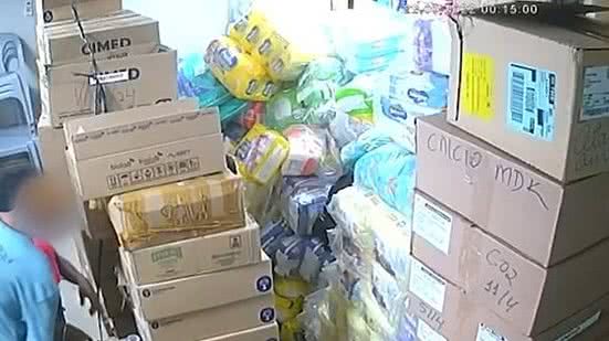 Nas imagens, os suspeitos aparecem mexendo em caixas no depósito da farmácia. Em outro momento, a mulher encontra dinheiro em espécie e esconde dentro da roupa, enquanto é abraçada e beijada pelo companheiro. Veja o vídeo: