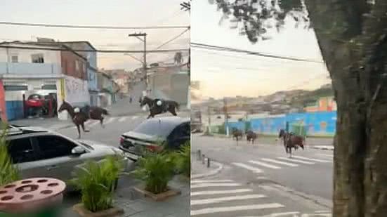 Três cavalos da Polícia Militar de São Paulo fugiram pelas ruas de Sapopemba, e assustaram quem passava pelo bairro na tarde desta quarta-feira (24). Os animais são do Comando de Choque da PM e escaparam dos agentes. Moradores do bairro registraram o momento em que os cavalos passam correndo pela via.