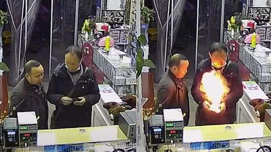 Um homem levou um susto em uma loja de assistência técnica em Deyang, na China, ao presenciar uma explosão de um aparelho celular nas próprias mãos. A cena foi gravada por câmeras da loja e, nas imagens, é possível ver o momento exato do incidente.