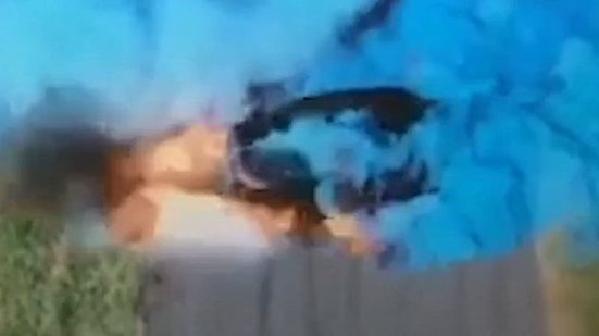 The popular tradition of “burnouts” in Australia to reveal baby genders took a bad turn when a car burning blue smoke burst into flames.