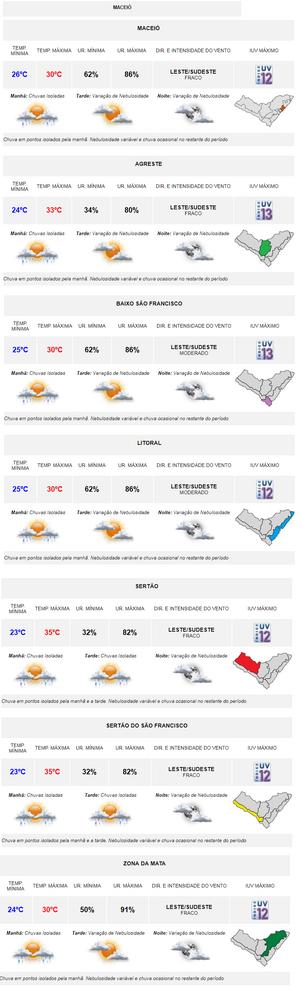 De acordo com o meteorologista Vinícius Pinho, da Secretaria do Estado do Meio Ambiente e Recursos Hídricos de Alagoas (Semarh), o clima deve permanecer com chuvas ocasionais nesta segunda e terça-feira. “Amanhã pela manhã ainda pode chover, mas deve ficar mais seco já no período da tarde”, completou Pinho.