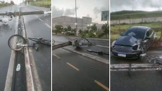 "O cara conseguiu derrubar o poste. Olha o carro como está, bateu agora no poste. Derrubou a fiação todinha aqui. A situação do carro, todo destruído", disse o popular em vídeo enviado à reportagem.
