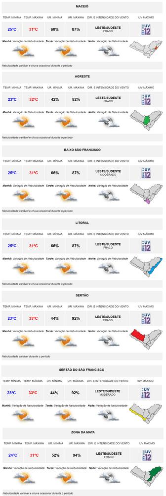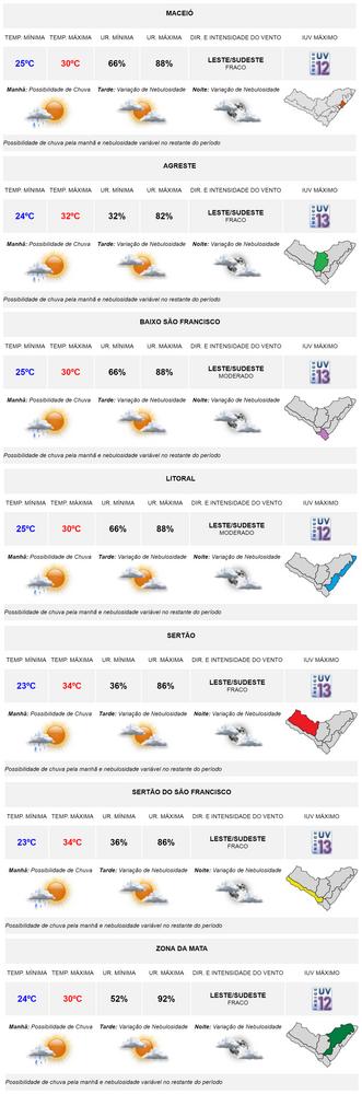 Em outras cidades como Arapiraca, Palmeira dos Índios, também no agreste do estado, e Joaquim Gomes, na Zona da Mata, registraram apenas chuvas fracas e ocasionais e tempo nublado.