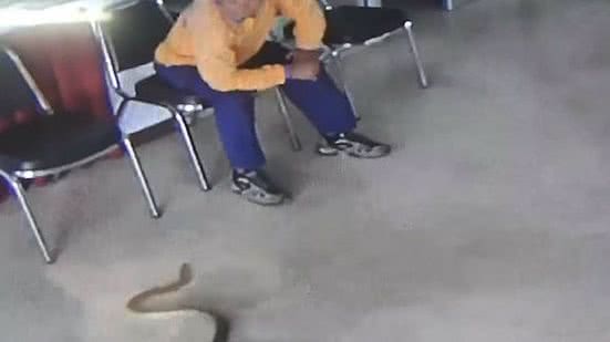 As câmeras de segurança de uma delegacia na Tailândia flagraram o momento que uma cobra invade o local e ataca um homem que estava sentado na recepção. O réptil, conhecido como cobra-de-rato, foi capturado e largado em um terreno nas proximidades.