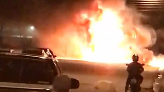 Uma colisão entre uma carreta e uma caçamba perto do terminal de ônibus do bairro Clima Bom resultou em um incêndio nos dois veículos na noite desta quarta-feira (11).